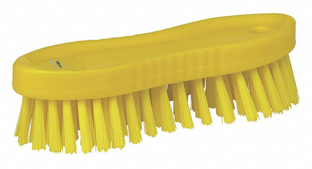 Scrub Brush, Bristle Firmness Medium, Handle Style Straight, Bristle Material Polyester, Handle Material Plastic, Brush Length 6 1/2 in, Handle Length 6 1/2 in, Head Width 1 3/4 in, Bristle Color Yellow, Overall Length 6 3/8 in, Yes, Bristle Length 1 in, Brush Type Hand Scrub Brush, Features Hanging Hole, Handle Color Yellow, Surface Type Dry, Wet, Head Shape Angled, Temperature Yes, Compliant Yes, Acid Yes, Color Coding System Yes