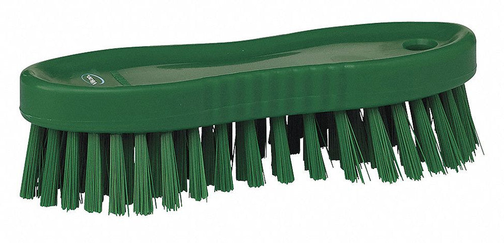 Scrub Brush, Bristle Firmness Medium, Handle Style Straight, Bristle Material Polyester, Handle Material Plastic, Brush Length 6 1/2 in, Handle Length 6 1/2 in, Head Width 1 3/4 in, Bristle Color Green, Overall Length 6 3/8 in, Yes, Bristle Length 1 in, Brush Type Hand Scrub Brush, Features Hanging Hole, Handle Color Green, Surface Type Dry, Wet, Head Shape Angled, Temperature Yes, Compliant Yes, Acid Yes, Color Coding System Yes