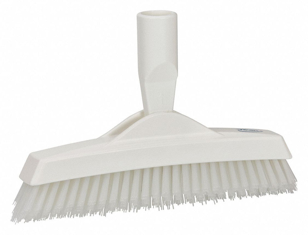 Grout Brush Head, Tool Type Grout Brush Head, Bristle Material Polyethylene, Brush Length 9 1/4 in, Bristle Firmness Stiff, Bristle Color White, Compliant Yes, Color Coding System Yes, Bristle Length 1 5/8 in, Connection Thread Type European, Handle Connection Type Threaded
