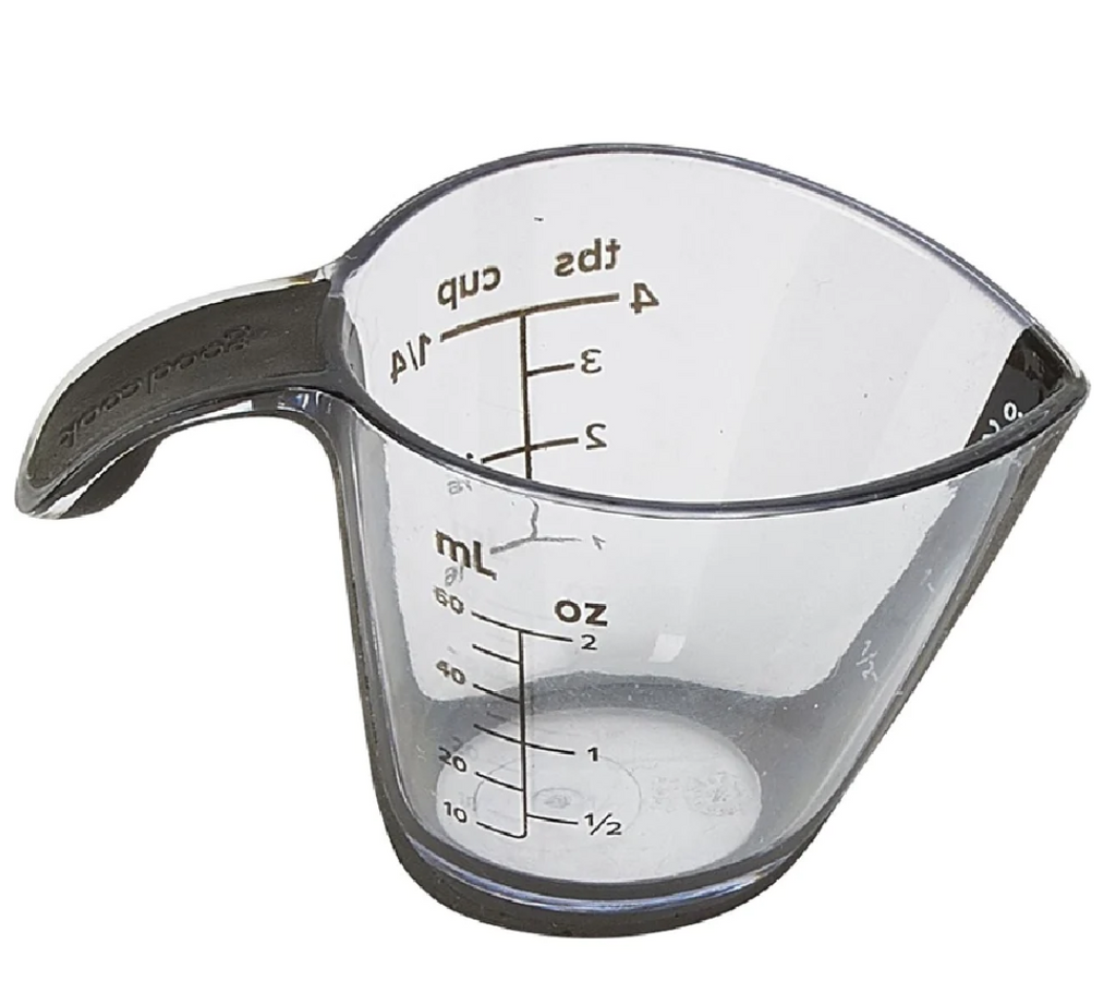 Easy-to-read markings display measurements in cup, ounces and metric equivalents. Heavy-duty temperature resistant plastic prevents breaking scratching or warping with regular use.